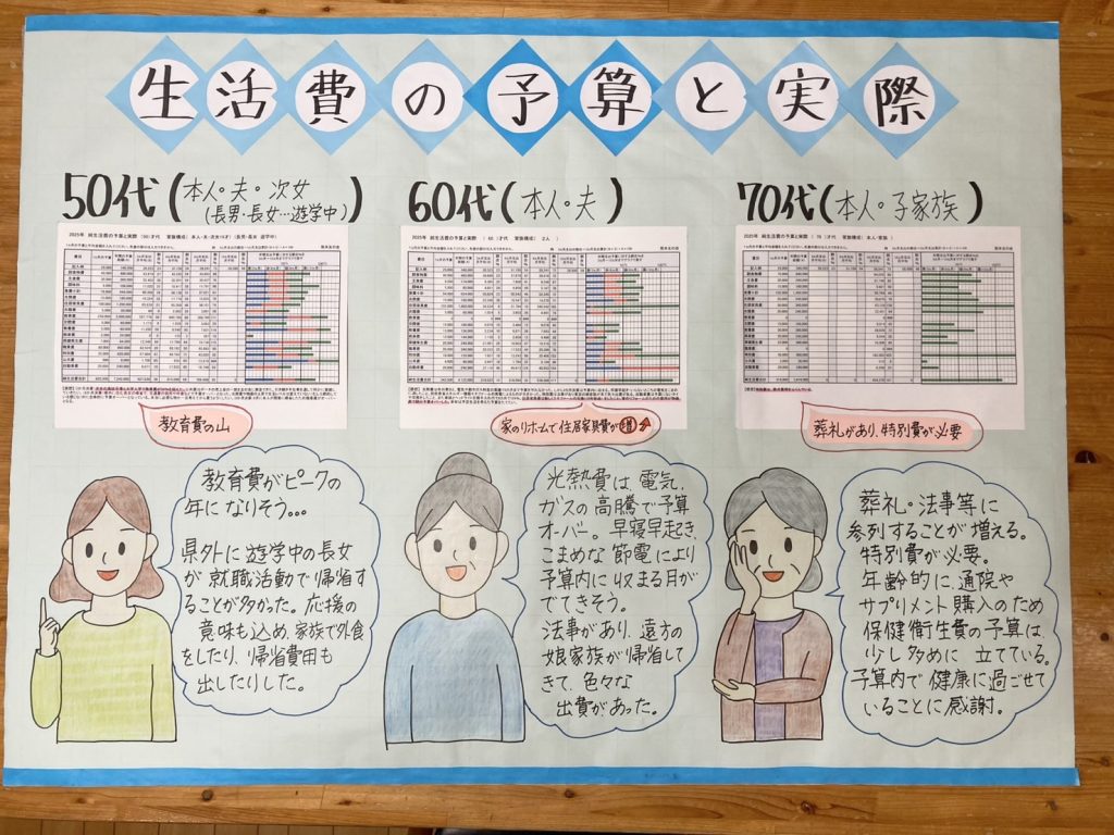 わかば最寄りでは、「家計」「食」「衣」をテーマにした日頃の活動を、写真や会員のコメントとともに表にまとめてみました。