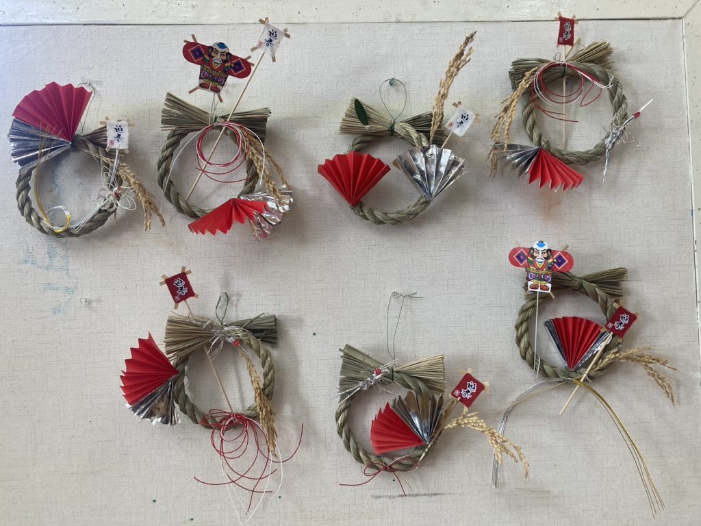 そのあと、しめ縄を作りました。縄に選んだ飾りをつけます。同じ材料でもそれぞれ違うものに仕上がりました。