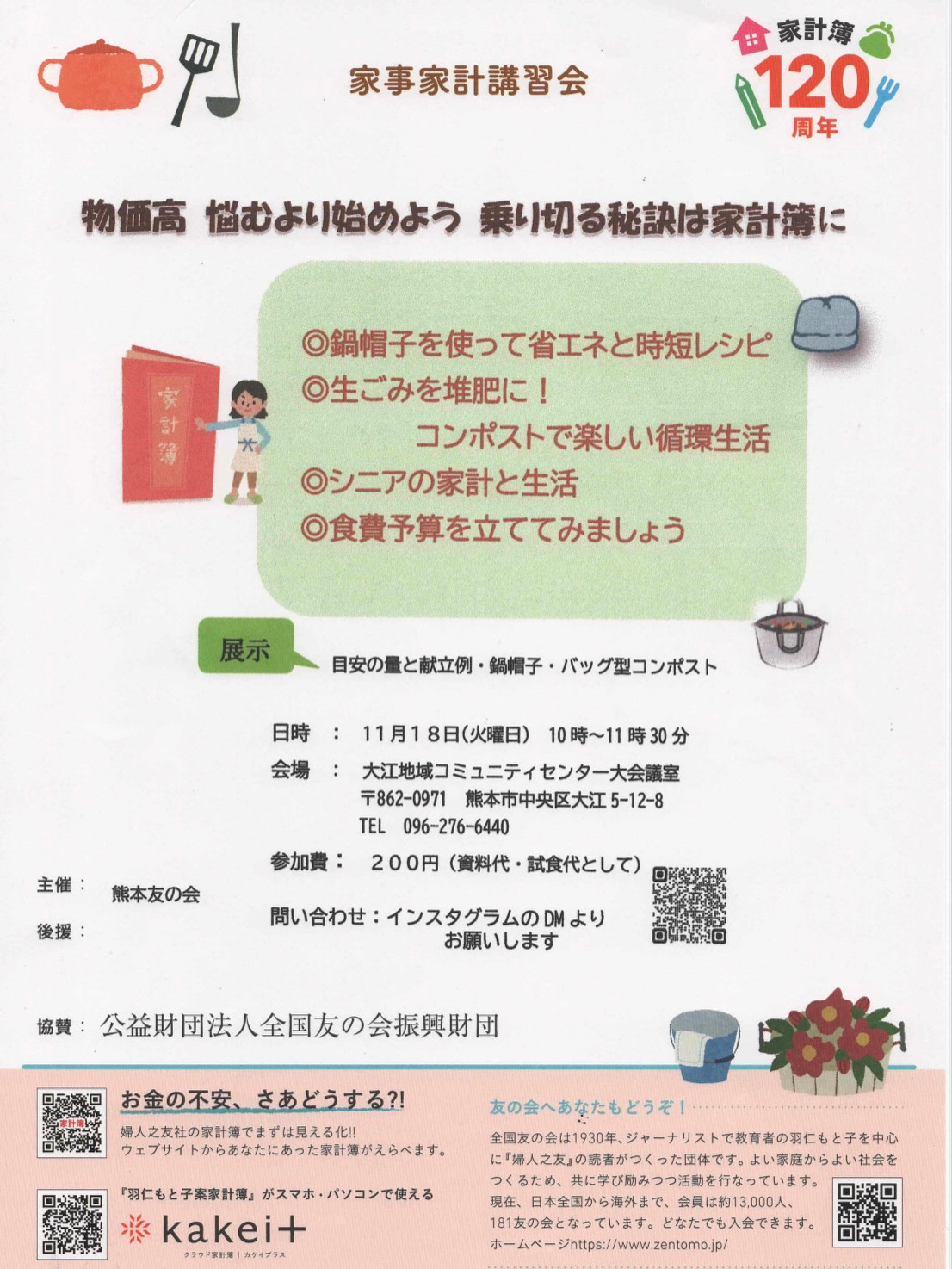 2024年6月13日 / 最終更新日時 : 2024年6月13日 Kumatomo 最寄会6月1回目の健軍江津最寄会 熊本友の会の健軍江津最寄の通年の生活勉強は「展開料理」 6月のテーマは「卵」 今年度は一人暮らしの人の為の展開料理で安価で簡単な料理というのがサブテーマなので、「卵料理」はピッタリの食材です 最寄会で卵の取りすぎにならな […]